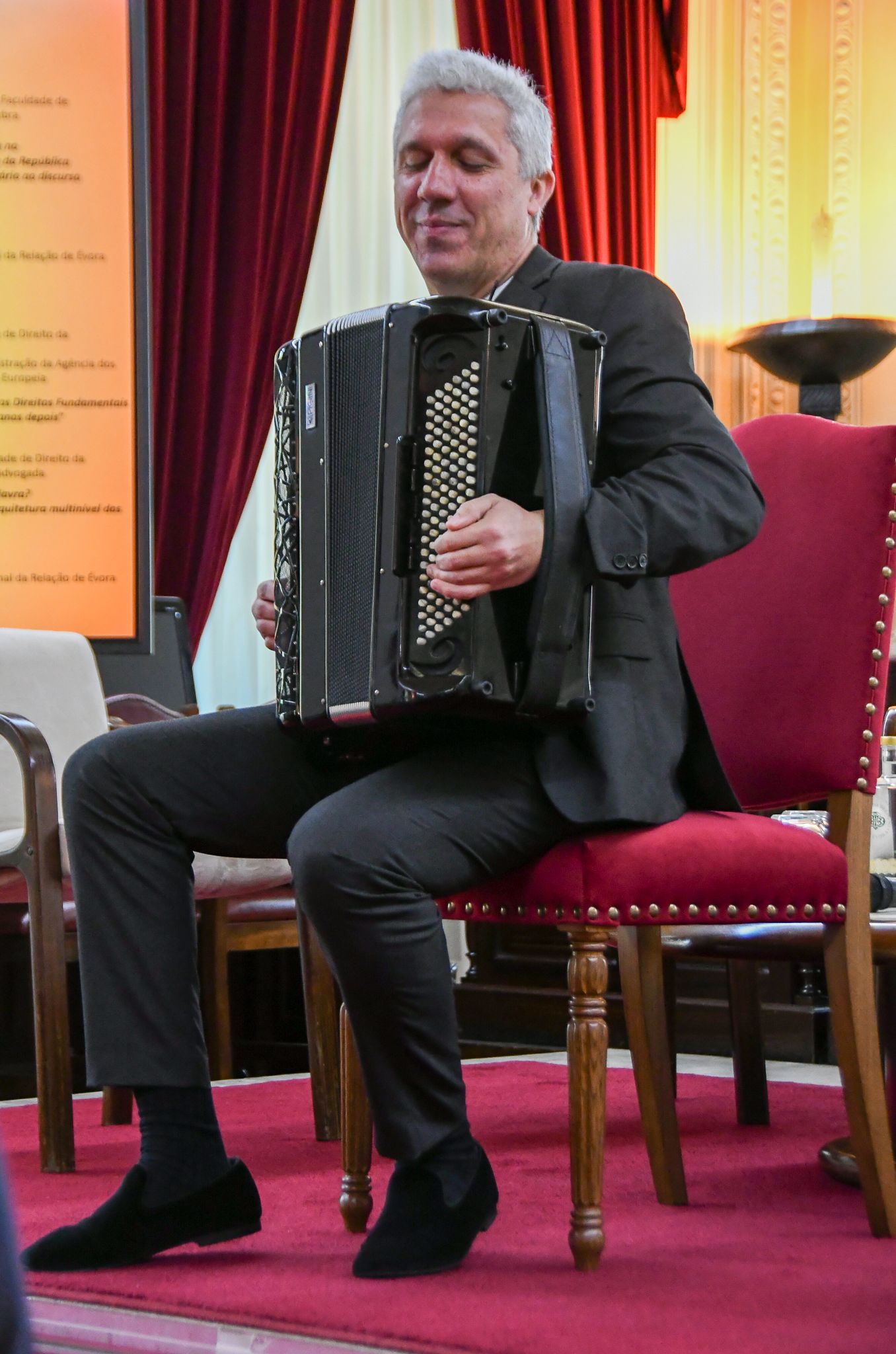 A sessão de abertura contou com um momento musical pelo Professor Gonçalo Pescada, do Departamento de Música da Universidade de Évora.
