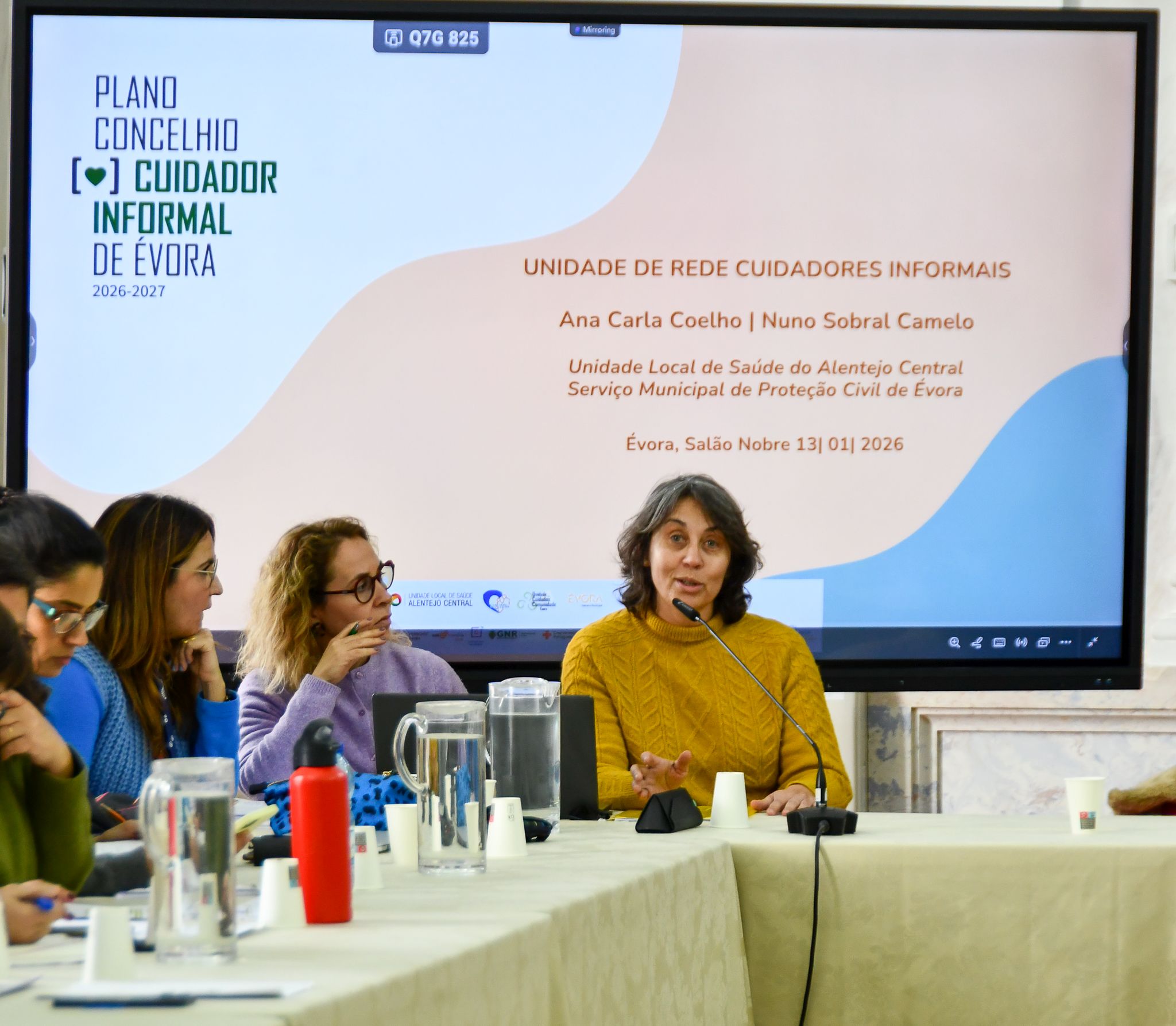 A sessão prosseguiu dando a conhecer, e aprovando por unanimidade, o Plano Concelhio de Cuidadores Informais de Évora 2026/27 que esteve a cargo da Unidade de Rede para Cuidadores Informais, apresentado nesta reunião por Ana Carla Coelho (Unidade Local de Saúde do Alentejo Central) e Nuno Camelo (Serviço Municipal de Proteção Civil de Évora).