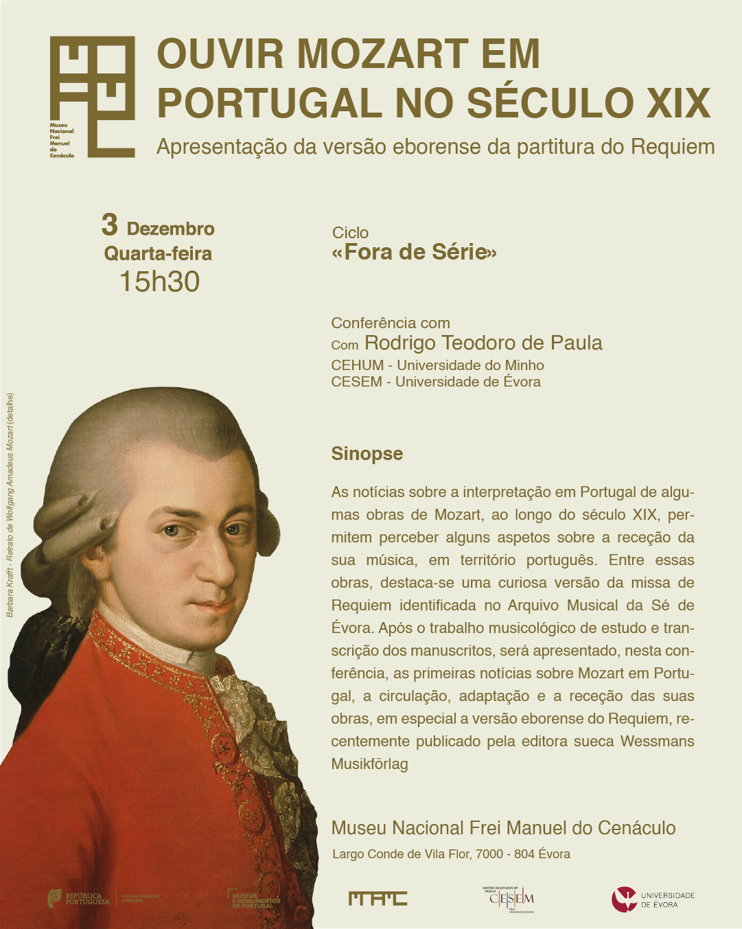 Início > Eventos > Ciclo “Fora de Série” | Ouvir Mozart em Portugal no século XIX. Apresentação da versão eborense da partitura do Requiem