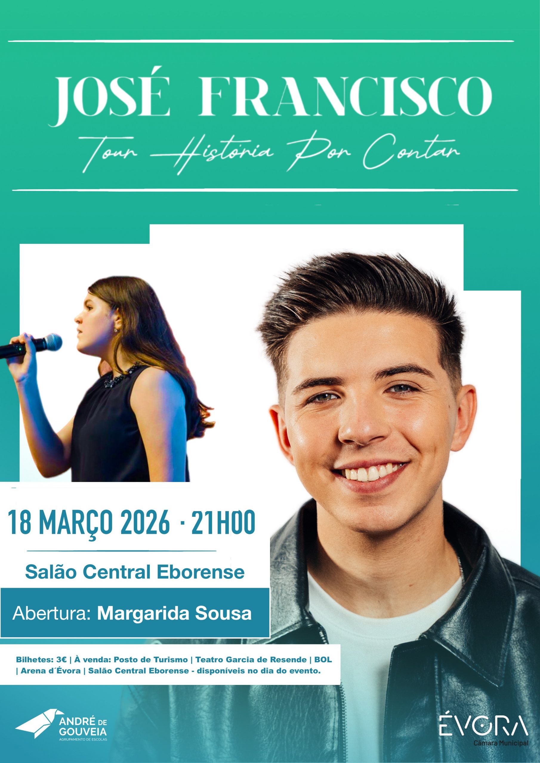 O Salão Central Eborense recebe um concerto especial em formato showcase com o artista José Francisco, que apresenta a sua tour História por Contar. Num ambiente mais próximo e intimista, o público terá a oportunidade de conhecer de perto as músicas e histórias que marcam este novo capítulo do artista.