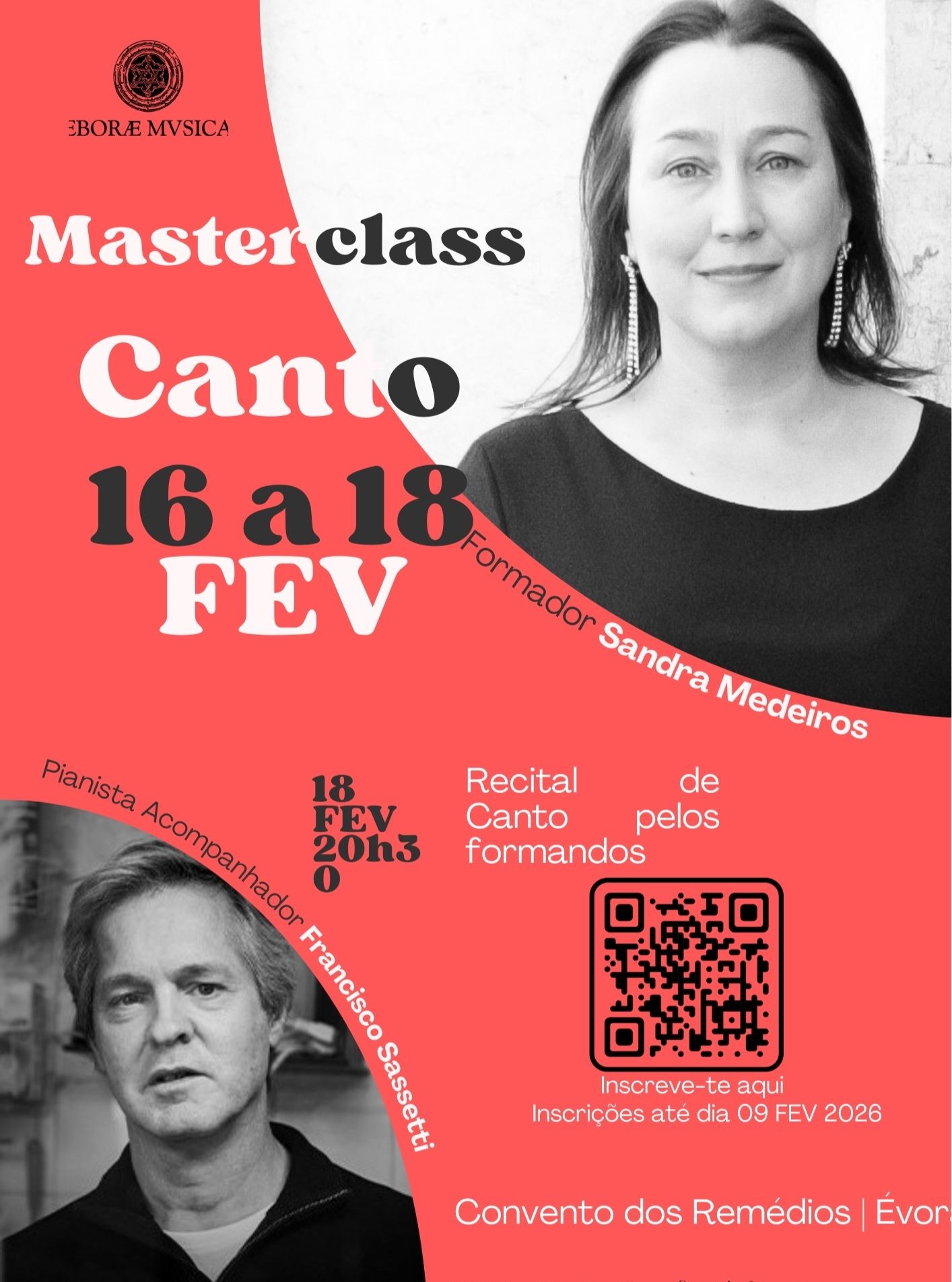No dia 18 de fevereiro, às 20h30, haverá Recital de Canto e Piano pelos alunos da masterclass.