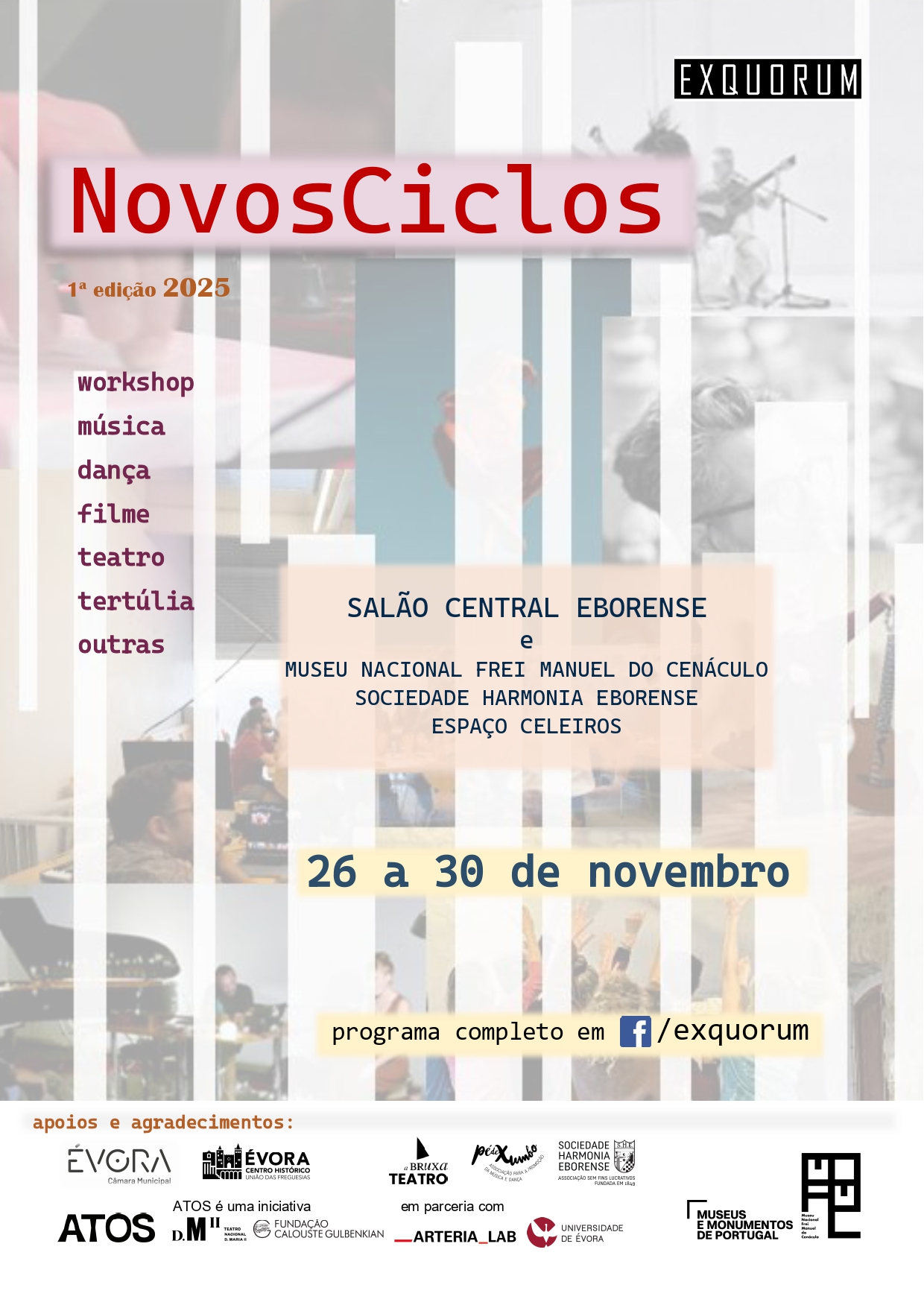 | Apoio: | Câmara Municipal de Évora, União de Freguesias de Évora, A Bruxa Teatro, PédeXumbo, Museus e Monumentos de Portugal – Museu Nacional Frei Manuel do Cenáculo |