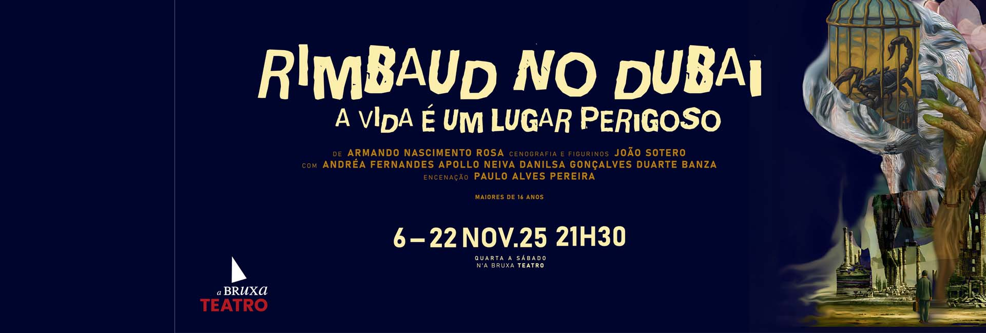 ‘Rimbaud no Dubai’, é uma fábula contemporânea sacrificial e vingadora, um thriller de teatro que nos prende desde a primeira cena a um enredo feito de monstruosidades reconhecíveis, que o subtítulo explicita: A vida é um lugar perigoso. Já o título da peça é uma pista enganosa, pois Rimbaud não é personagem da acção, somente alguém que escreve poemas enquanto exerce ofício criminoso numa rede de tráfico de órgãos humanos. Um retrato de barbárie, tão literal quanto metafórica, dirigido à distopia global em que vivemos, no chamado capitalismo tardio.