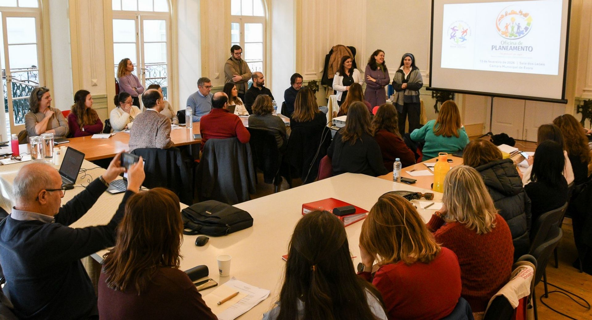 Dar a conhecer o ponto de situação do desenvolvimento e execução do Plano de Desenvolvimento Social 2024-2027, refletir conjuntamente sobre as necessidades existentes no território para cada um dos eixos do PDS e a prioridade da sua satisfação; apresentar propostas de ação que complementem e enriqueçam cada um dos eixos deste instrumento de trabalho e propostas de melhoria de funcionamento da Rede Social foram os principais objetivos da Oficina de Planeamento que decorreu no dia 13 fevereiro, nos Paços do Concelho de Évora.