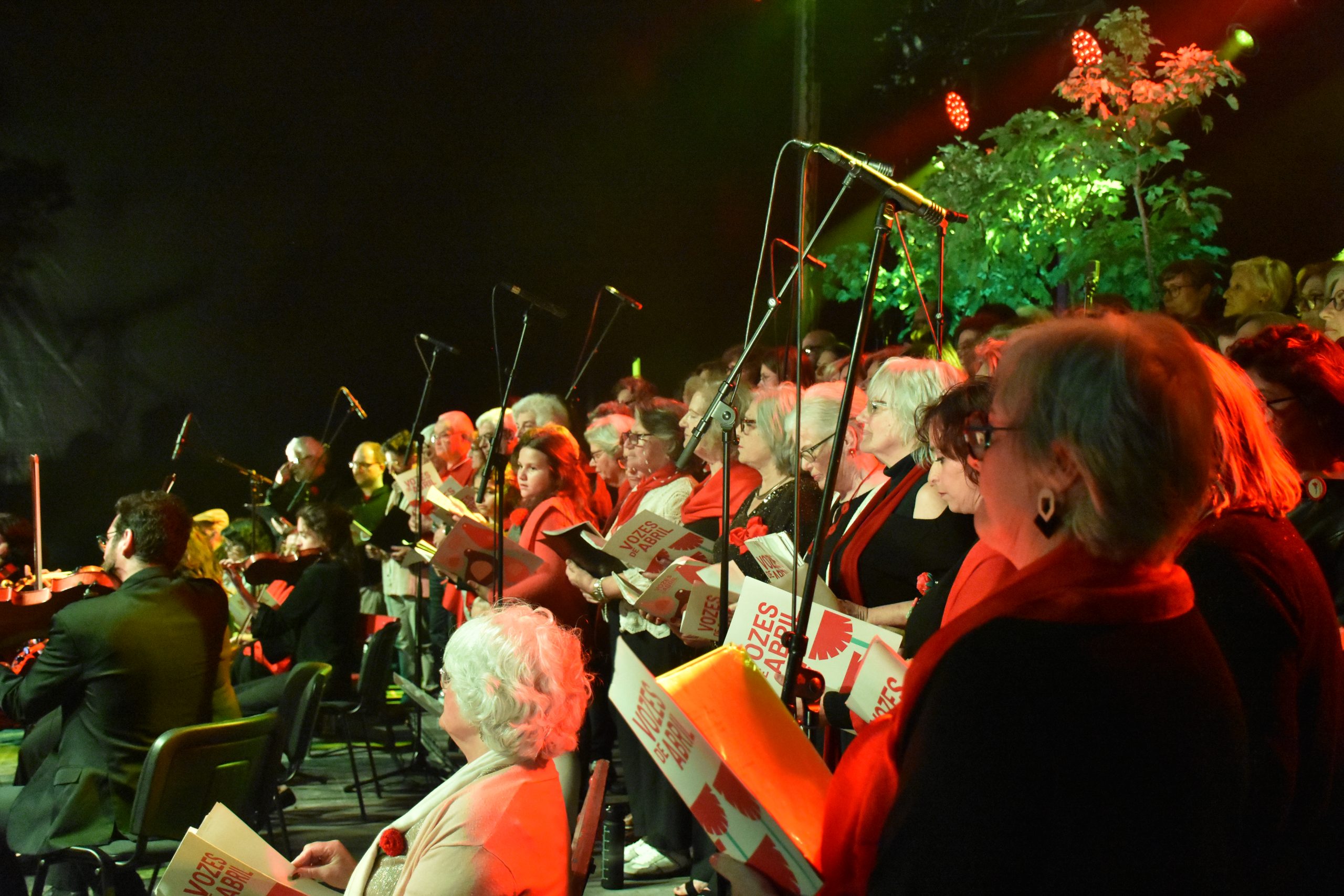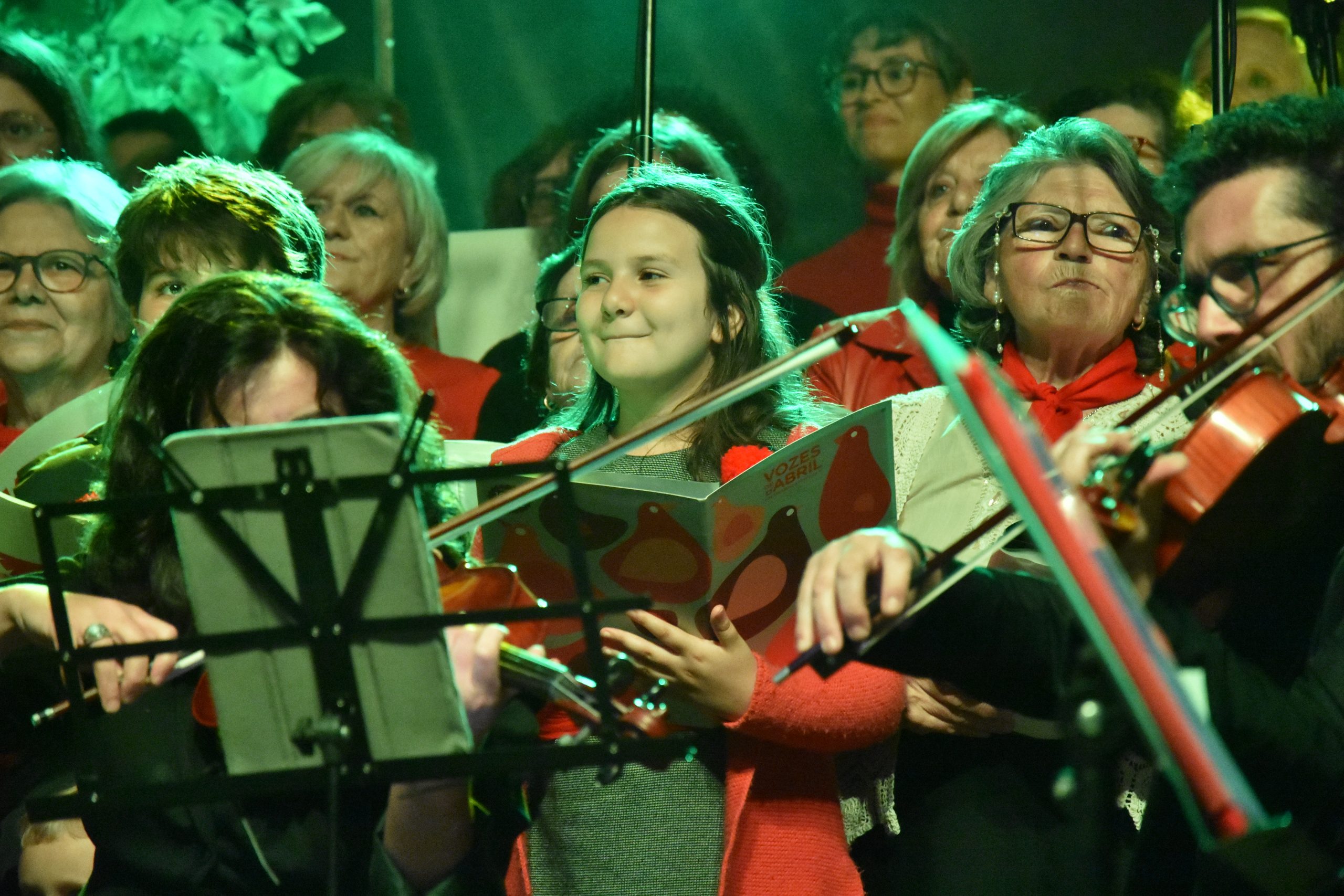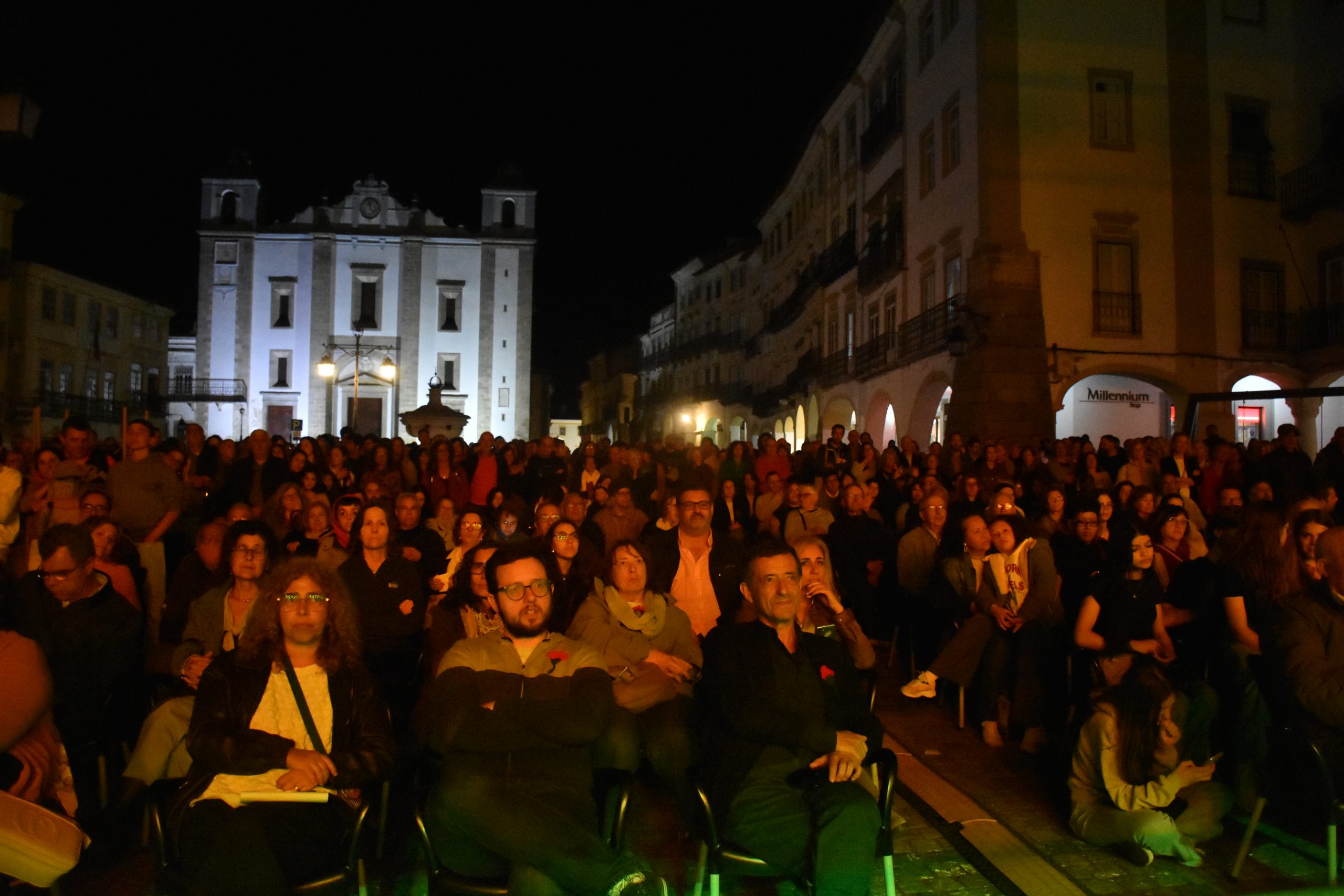 Mais de 100 cantores e músicos subiram a palco na noite de 25 de Abril, para celebrar o dia da Liberdade, na Praça de Giraldo, com músicas da Revolução. O coro gigante das Vozes de Abril e da Orquestra do Alentejo, sob a batuta da maestrina Mara, fez-se ouvir em comunhão com o público.