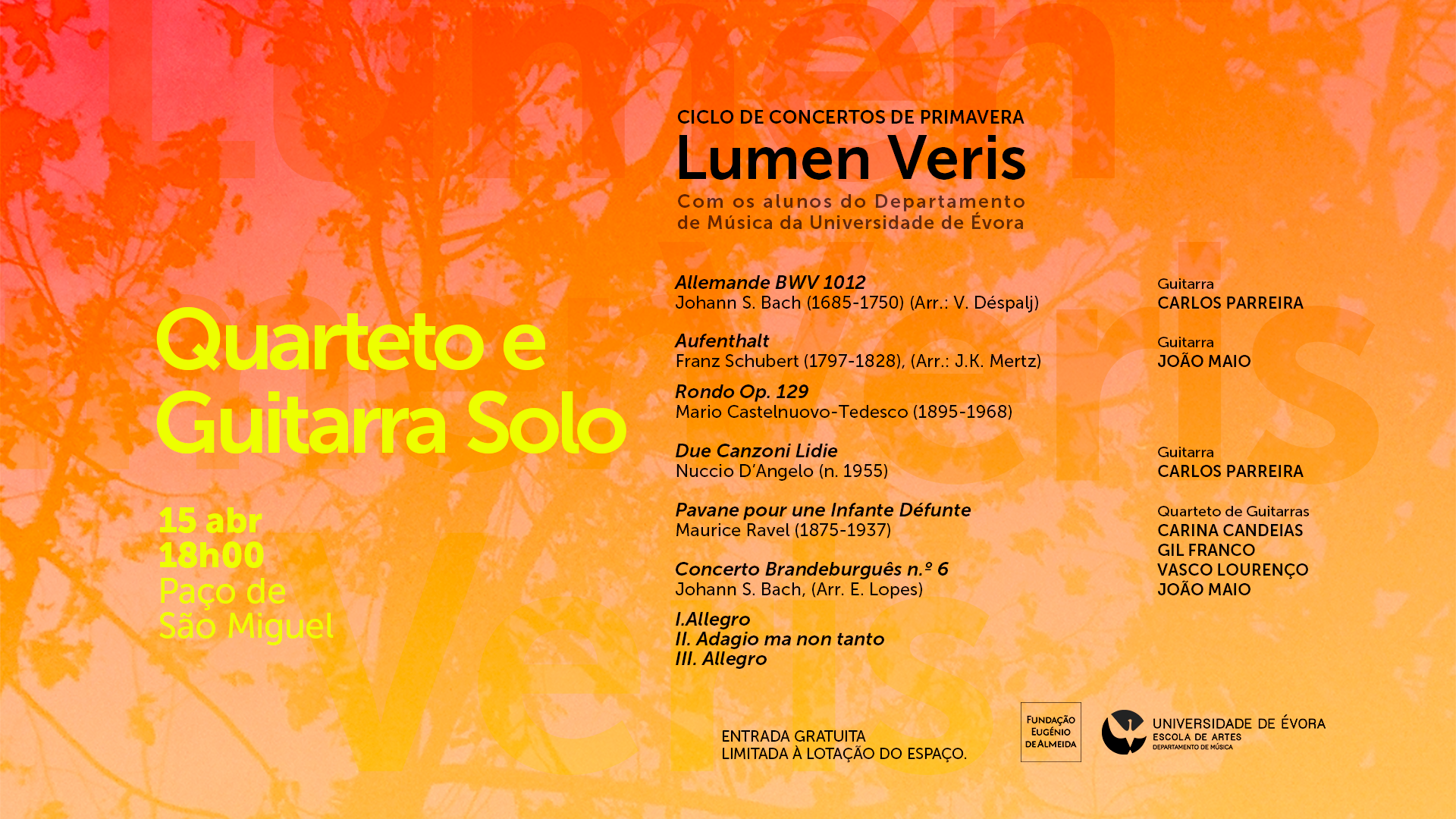 Ciclo de concertos de primavera | Lumen Veris: QUARTETO E GUITARRA SOLO