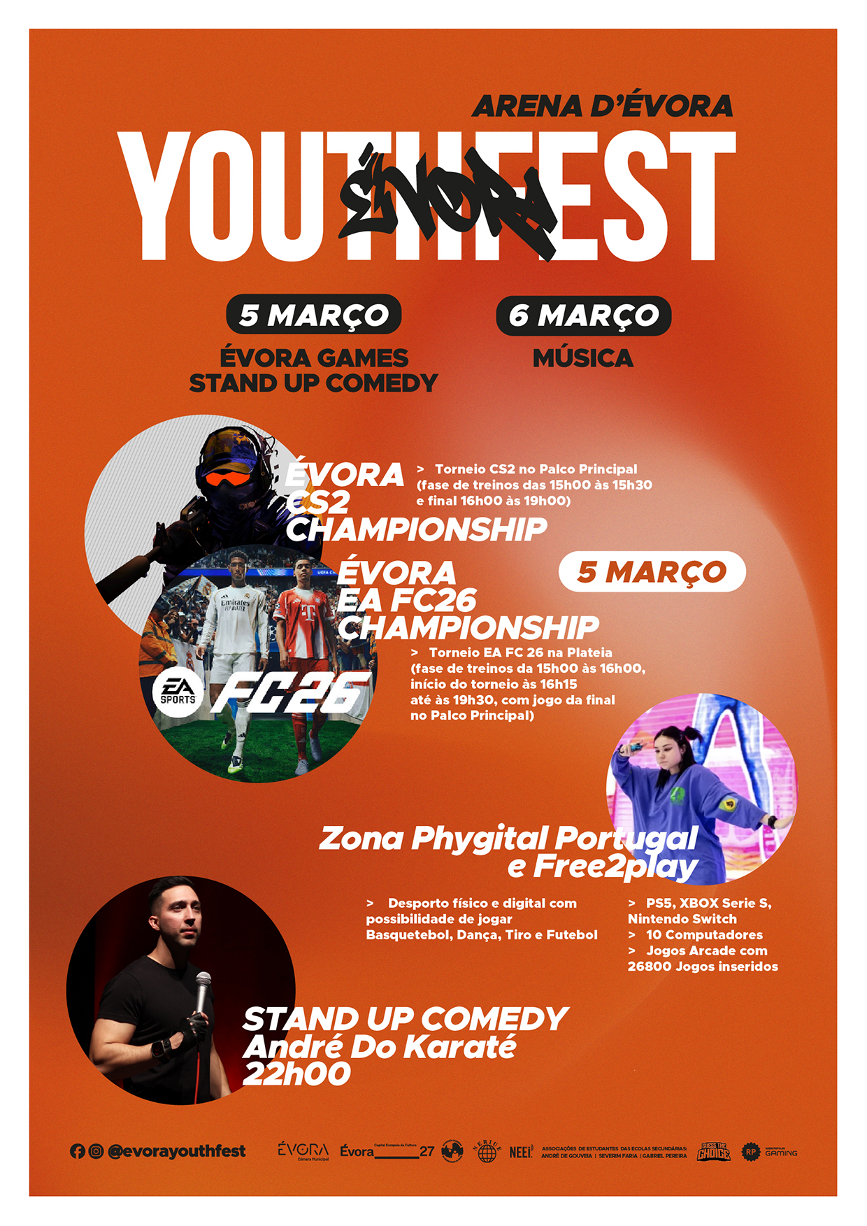 𝗢 Évora Youth Fest 𝗲𝘀𝘁𝗮́ 𝗱𝗲 𝗿𝗲𝗴𝗿𝗲𝘀𝘀𝗼 𝗻𝗼𝘀 𝗱𝗶𝗮𝘀 𝟬𝟱 𝗲 𝟬𝟲 𝗱𝗲 𝗺𝗮𝗿𝗰̧𝗼 𝗮̀ 𝗔𝗿𝗲𝗻𝗮 𝗗’𝗘́𝘃𝗼𝗿𝗮