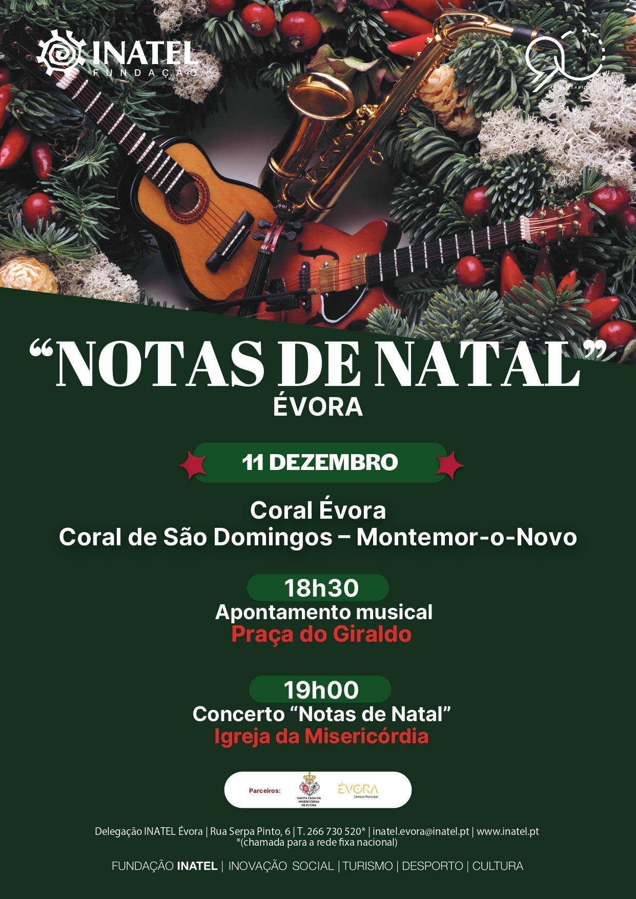 11 dez. | 18h30 e 19h00 | Concerto de Notas de Natal com Coral de São Domingos e Coral de Évora