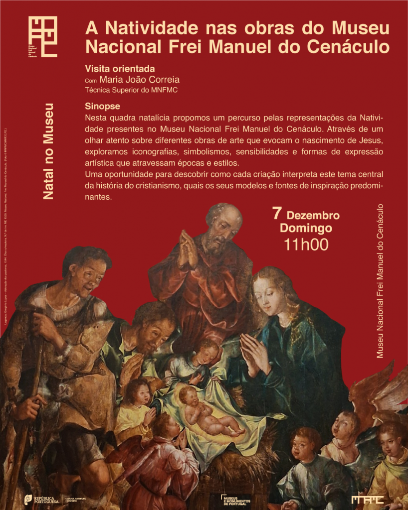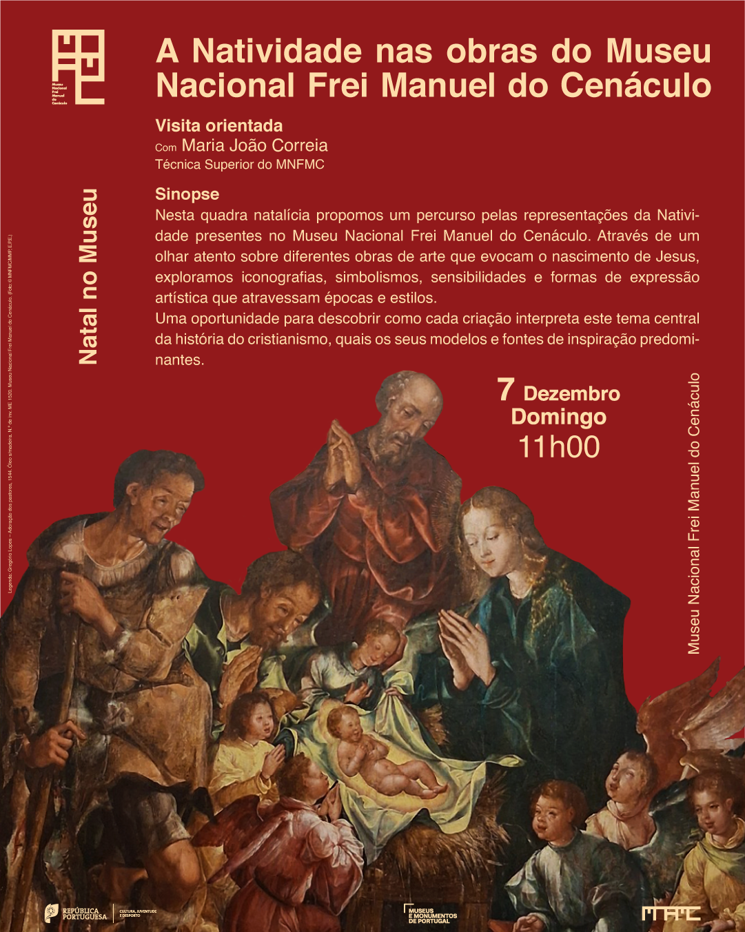 Esta visita será conduzida por Maria João Correia, Técnica Superior do MNFMC, que através de um olhar atento sobre diferentes obras que evocam o nascimento de Jesus, explorará iconografias, simbolismos, sensibilidades e formas de expressão artística que atravessam épocas e estilos. Uma oportunidade, a não perder, para descobrir como cada criação interpreta este tema central da história do cristianismo, quais os seus modelos e fontes de inspiração predominantes.