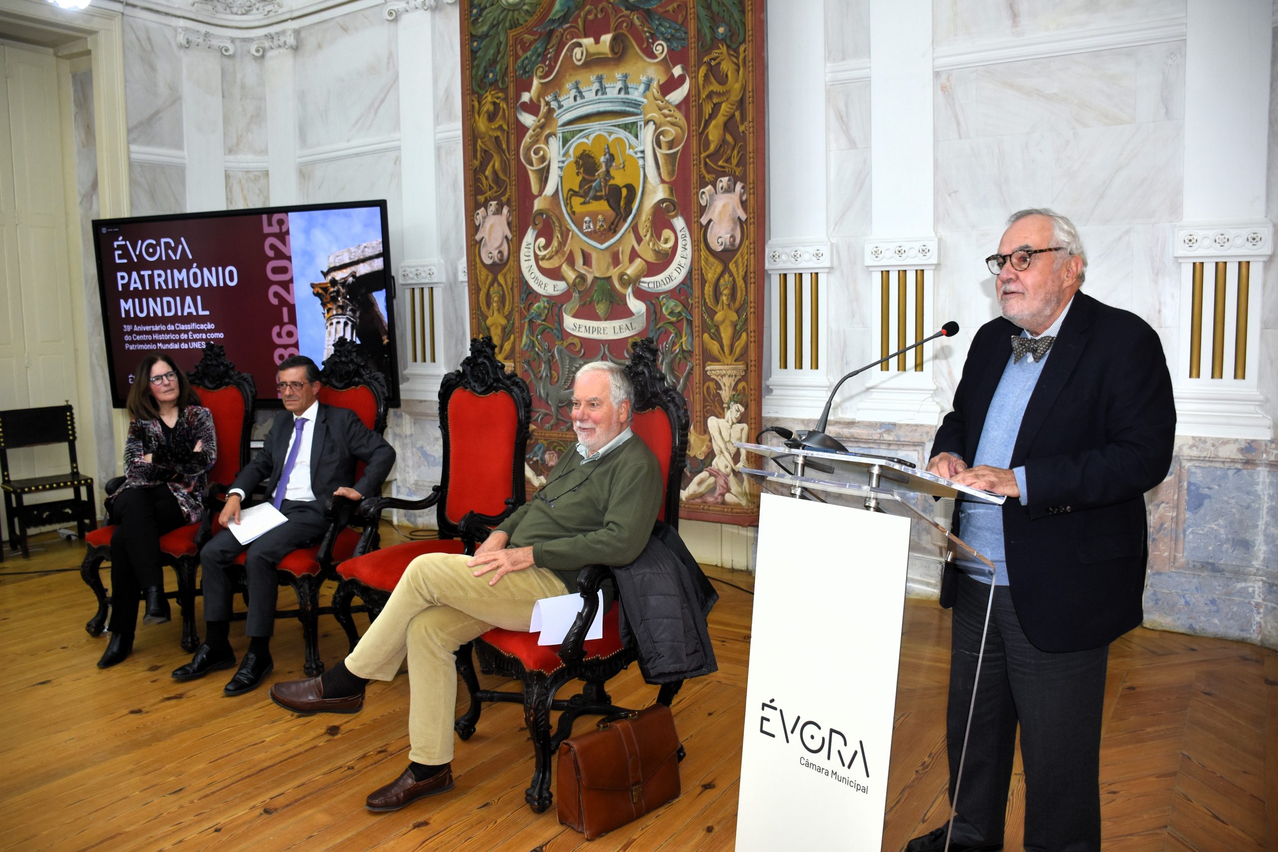 Como oradores, a sessão contou com Ana Paula Amendoeira, vice-presidente da CCDR-Alentejo para a Cultura; Filipe Marchand d’Orey, coordenador do dossier de candidatura, e José Filipe Moraes Cabral, Presidente da Comissão Nacional da UNESCO. Nos seus discursos, estes responsáveis contaram a história do processo de candidatura e lançaram a discussão sobre os desafios futuros do Centro Histórico de Évora.