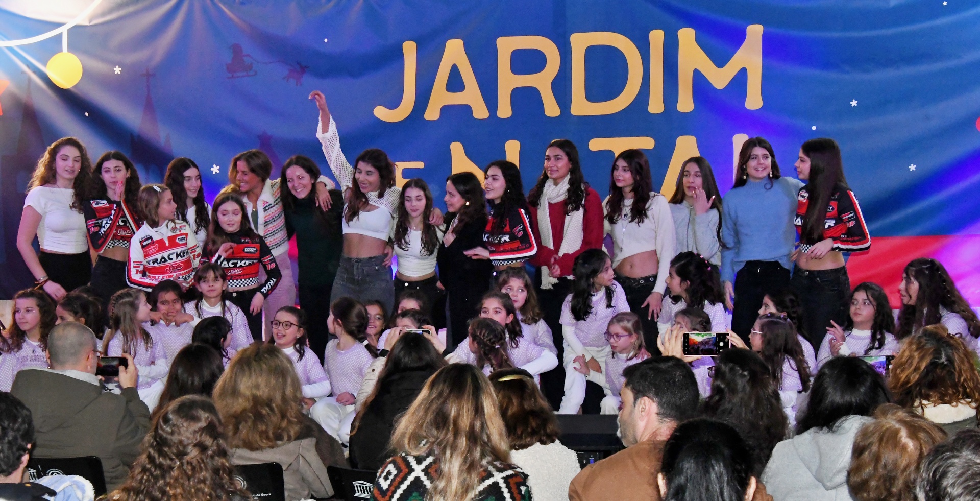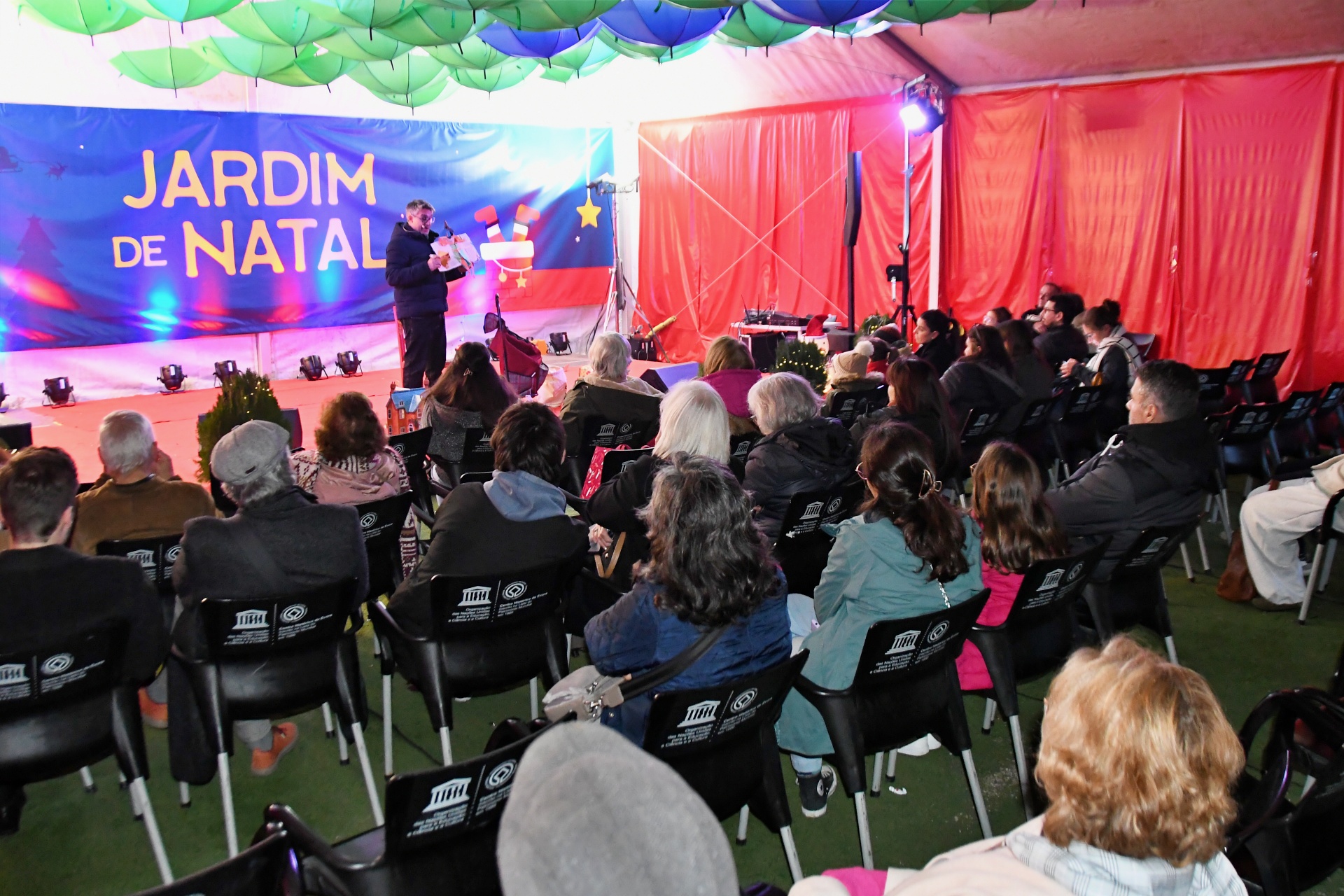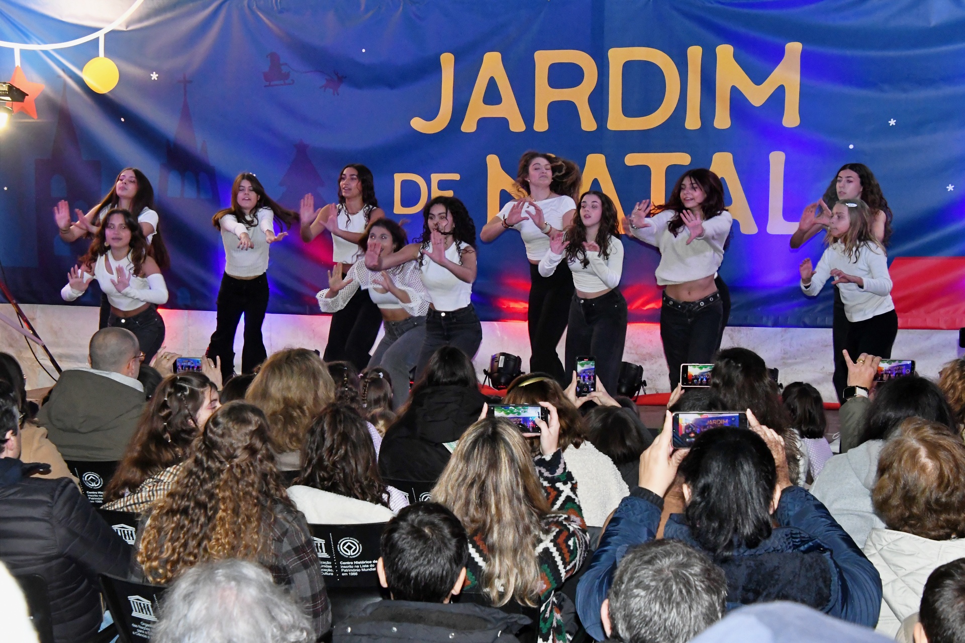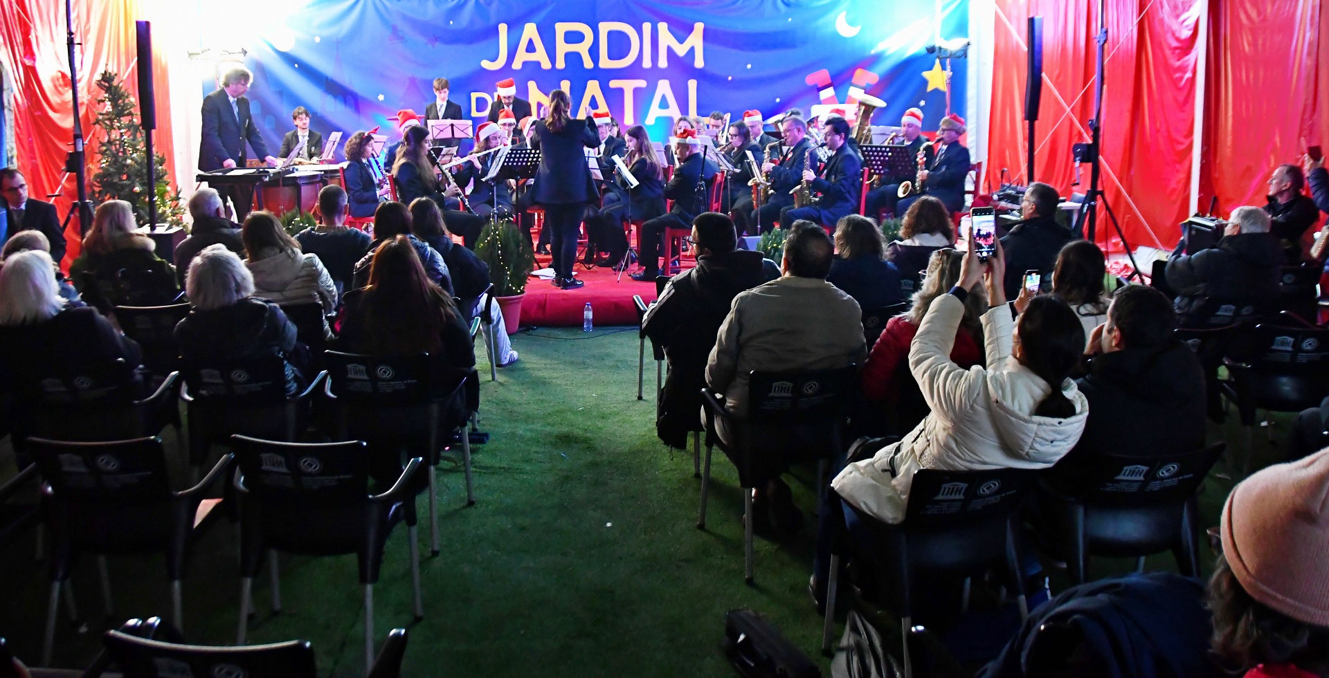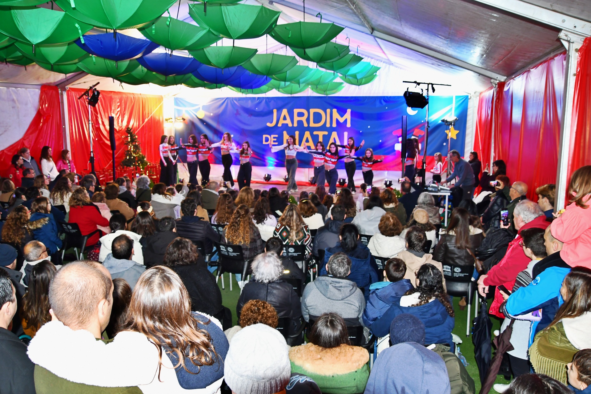A tenda do Jardim de Natal foi pequena para tanta gente que fez questão de assistir à Apresentação de Dança, pelo Studio Minô (aulas de Hip Hop Kids e Danças Urbanas), seguida pela atuação da banda Associação Filarmónica Liberalitas Julia e por uma Sessão de Contos com Jorge Serafim, que, como já é hábito, faz sempre soltar muitas risadas na plateia.