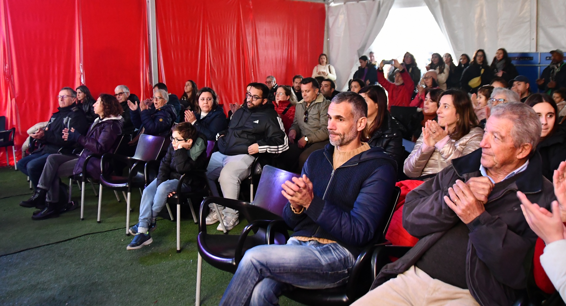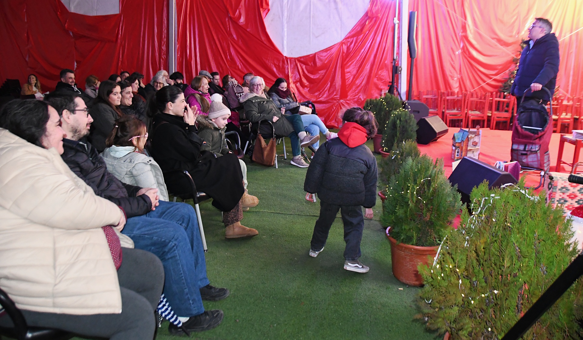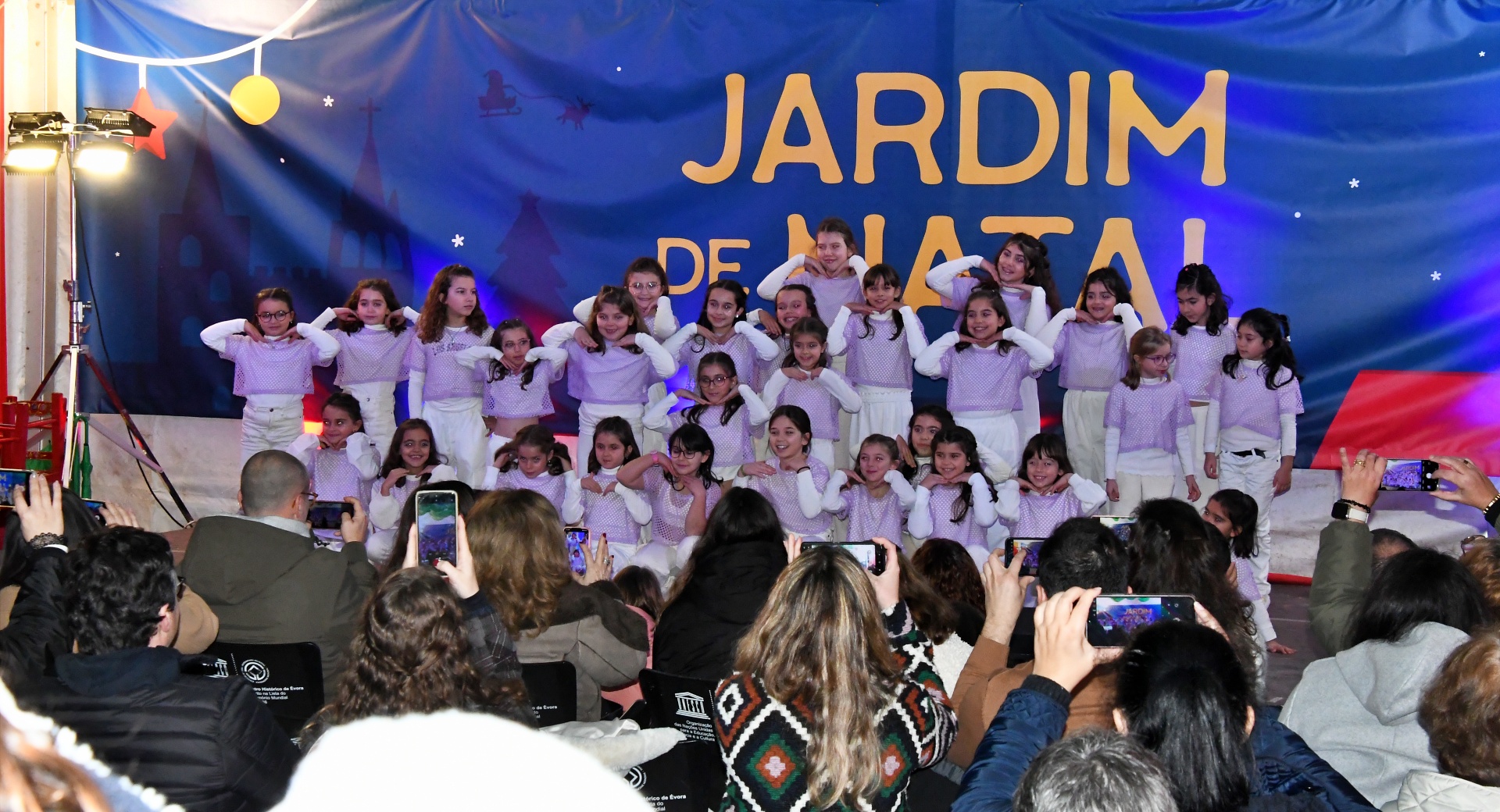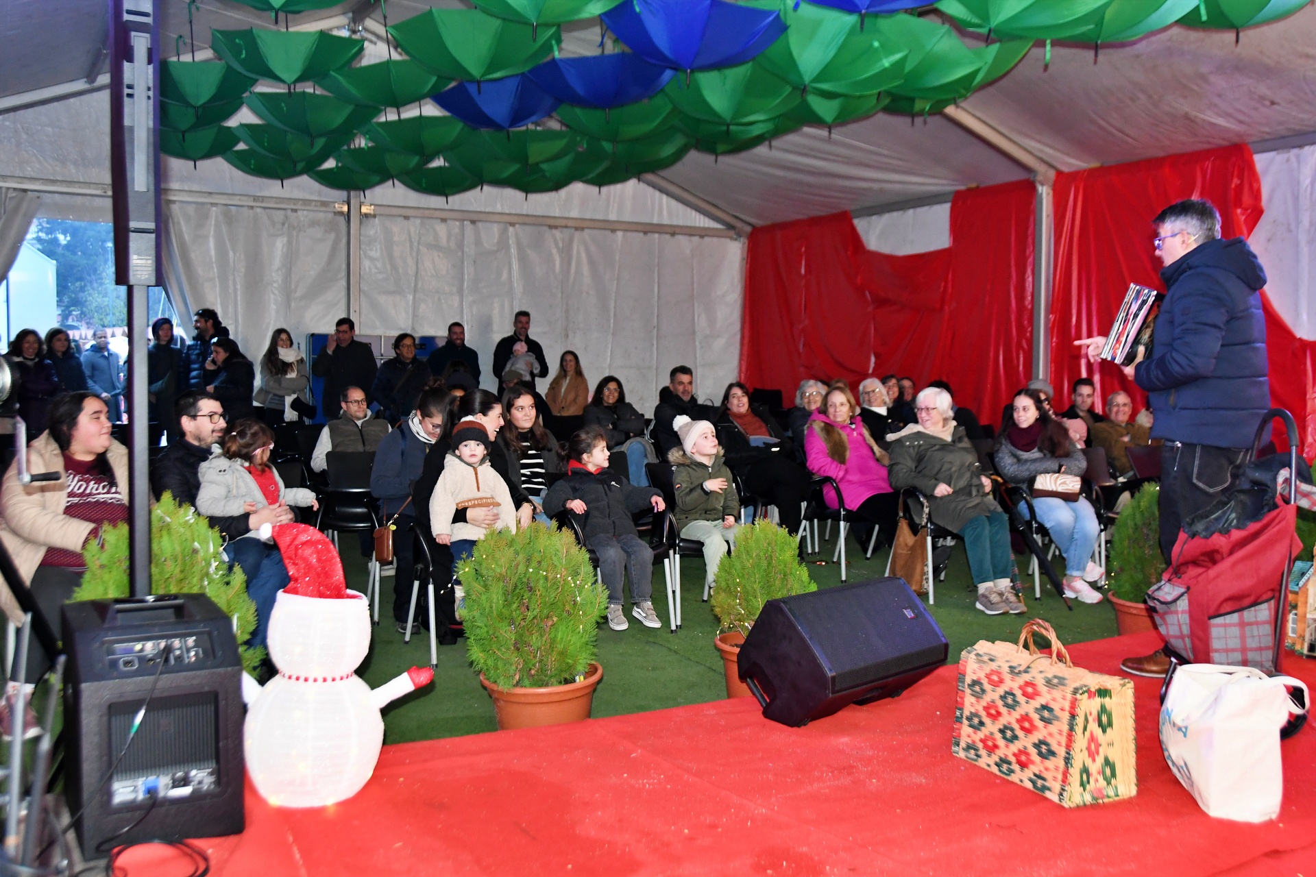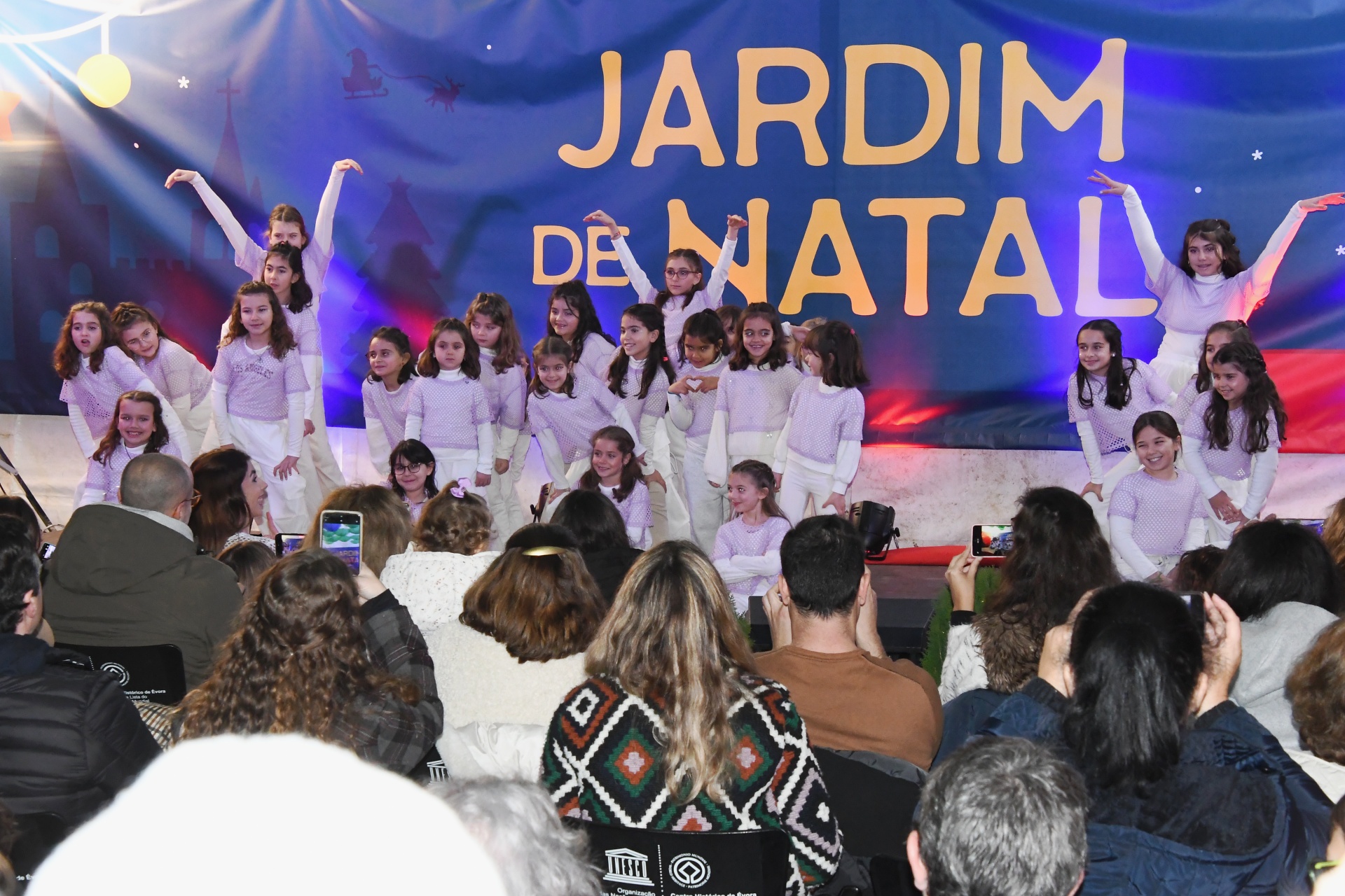 A tenda do Jardim de Natal foi pequena para tanta gente que fez questão de assistir à Apresentação de Dança, pelo Studio Minô (aulas de Hip Hop Kids e Danças Urbanas), seguida pela atuação da banda Associação Filarmónica Liberalitas Julia e por uma Sessão de Contos com Jorge Serafim, que, como já é hábito, faz sempre soltar muitas risadas na plateia.