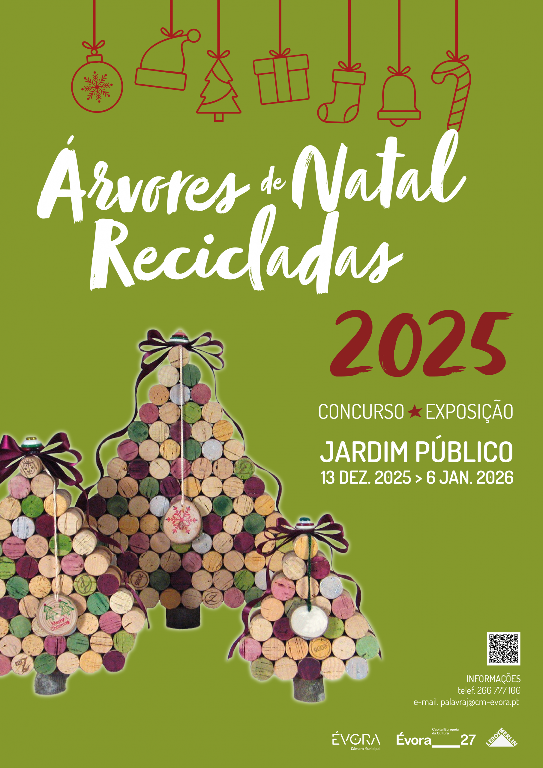 A exposição resultante do concurso “Árvores de Natal Recicladas 2025”, promovido pela Câmara Municipal de Évora, irá ficar exposta, no Jardim Público, entre os dias 13 de dezembro e 6 de janeiro de 2026.