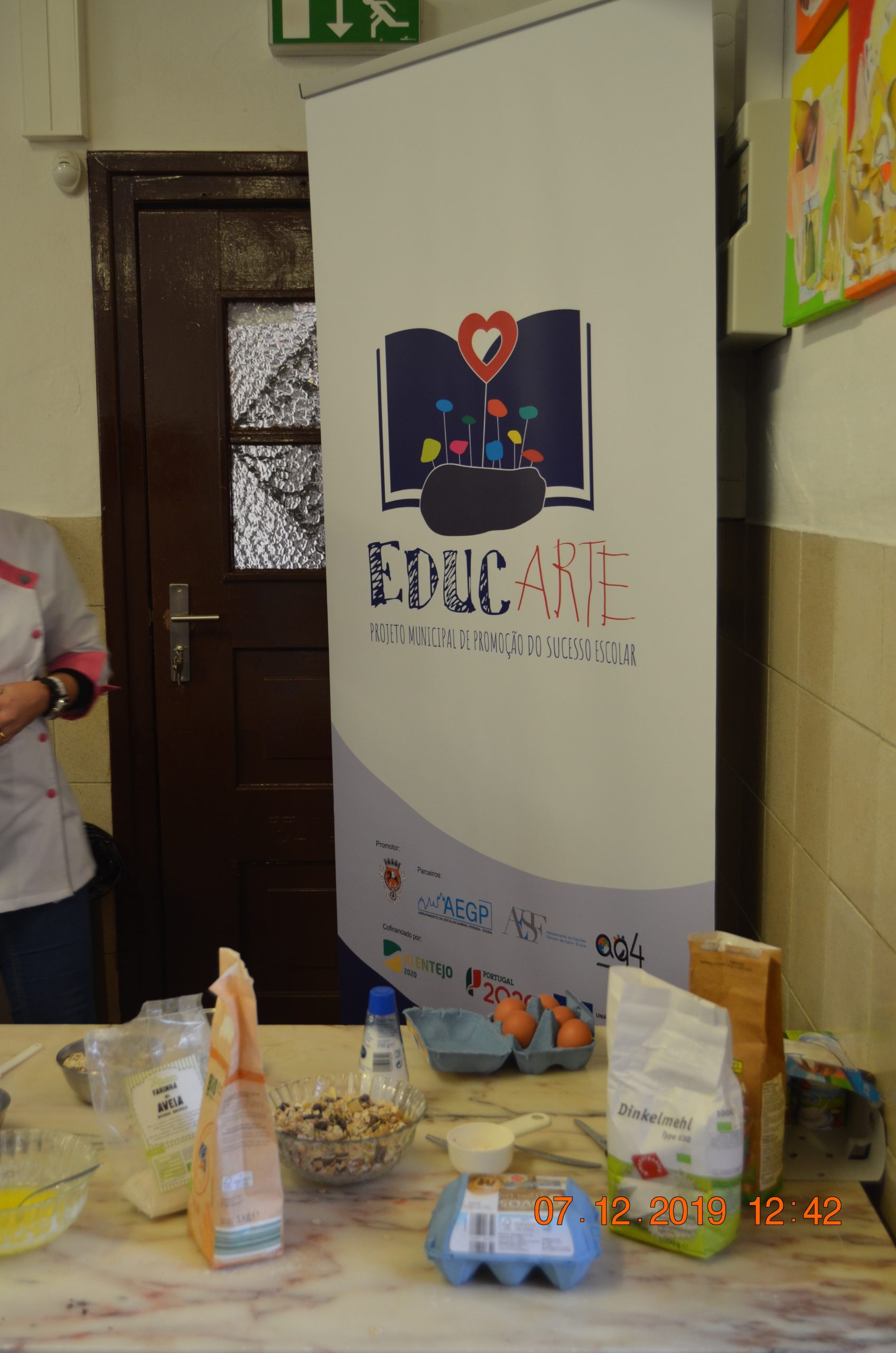 A Equipa do Projeto de Promoção do Sucesso Escolar EducArte organizou a ação “Vamos Fazer um Bolo-Rei Saudável? – Workshop de Culinária destinada a pais e filhos”, dinamizada por Ângela Nunes, no dia 7 de Dezembro de 2019, na Cantina Escolar da E.B. Rossio de S. Brás.